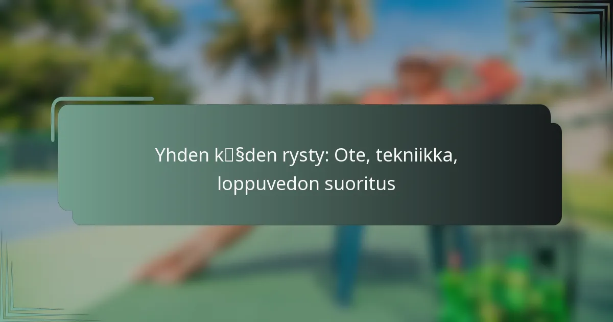 Yhden käden rystylyönti on dynaaminen ja voimakas lyönti tenniksessä, joka perustuu otteen, tekniikan ja loppuvedon hallintaan. Oikean otteen valinta, kuten itäinen tai kontinenttinen, voi vaikuttaa merkittävästi suoritukseesi. Lisäksi kehon linjauksen ja jalkojen asennon ymmärtäminen on olennaista tämän lyönnin tehokkaassa toteuttamisessa. Sujuva loppuveto on tärkeä tarkkuuden, voiman ja spinin parantamiseksi, mikä tekee siitä keskeisen osan onnistunutta yhden käden rystylyöntiä.